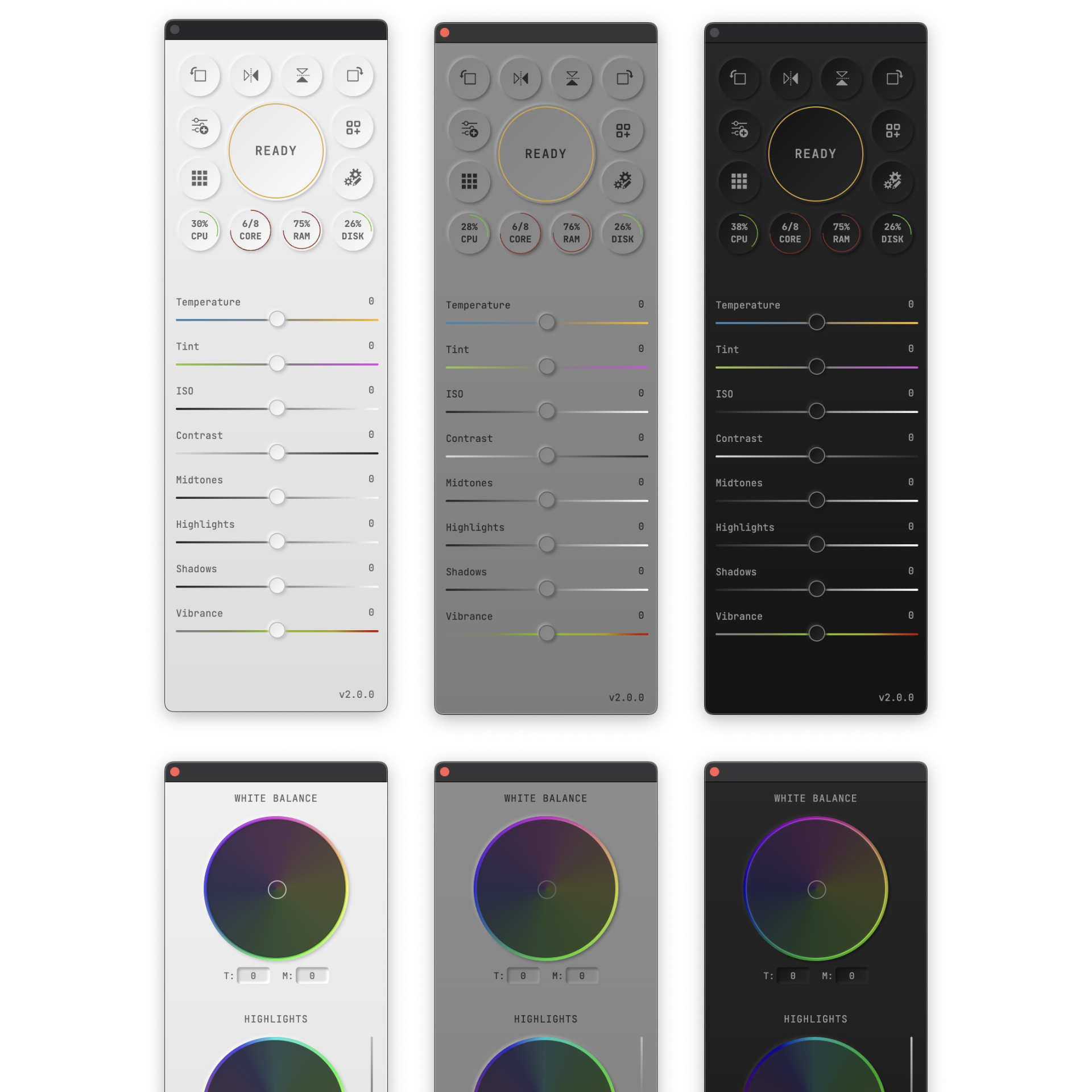 Wheeler Module: color wheels for white balance/tint. Shadows and highlights color and gradation correction